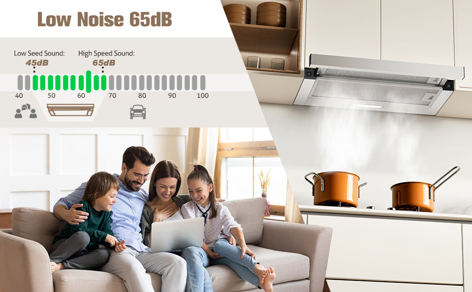 Hocheffizienter Motor mit Zentrifugalflügeln, starke Saugkraft und geringe Geräuschentwicklung, damit Sie sich mehr auf das Kochen konzentrieren können. Ohne Lärmbelästigung werden Sie sich beim Kochen wohlfühlen und Ihre Familie kann das Essen genießen.