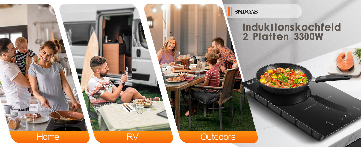 - Dieses Induktionskochfeld hat 2 Kochzonen mit einer maximalen Leistung von 3300 Watt. Kompakte Größe und geringes Gewicht macht es Kochen überall mit Stromversorgung.das elegante Design ermöglicht den Herd als eine Dekoration für die Küche.