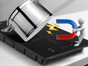 - Der Induktionsherd startet erst, wenn das entsprechende Kochgeschirr auf die Oberfläche gestellt wurde und schaltet sofort ab, wenn das Kochgeschirr entfernt wird, um die Sicherheit zu gewährleisten.