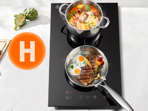 Wenn die Oberflächentemperatur 60°C überschreitet, wird ein "H" angezeigt das anzeigt, dass die Kochzone zu heiß zum Berühren ist. Es verschwindet, wenn die Oberfläche auf eine sichere Temperatur abgekühlt ist. Sie kann auch als Energiesparfunktion genutzt werden, wenn Sie weitere Pfannen erhitzen wollen, das noch heiße Induktionskochfeld verwenden