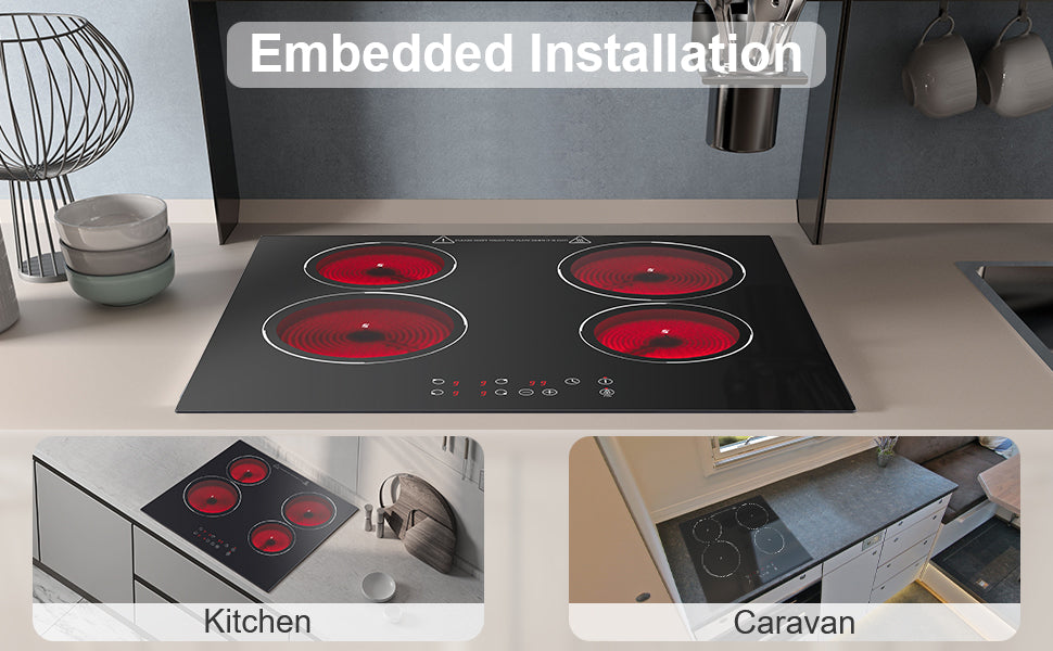 FYCH04- Glaskeramikkochfeld 4 Platten 6000W 9Leistungsstufen Touch-Steuerung