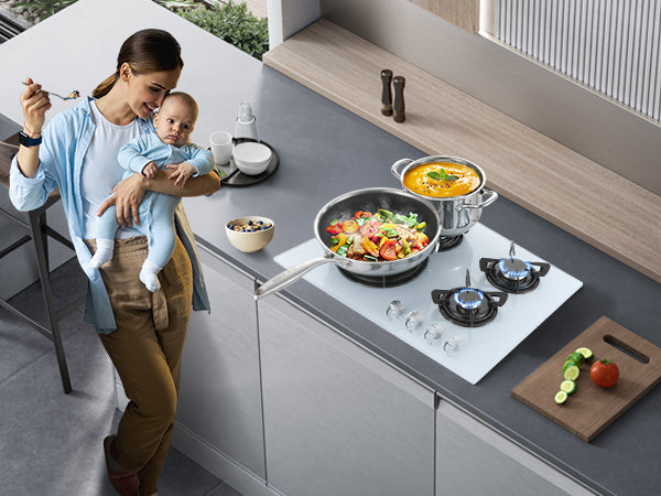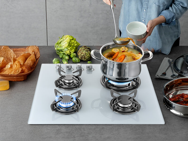 Mit den 4 leistungsstarken Brennern können Sie mühelos bis zu 4 Gerichte gleichzeitig zubereiten und kochen, was die Kochzeit erheblich verkürzt.