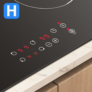 Wenn die Oberflächentemperatur 60°C überschreitet, wird ein “H”angezeigt, um darauf hinzuweisen, dass die Kochzone zu heiß zum Anfassen ist.