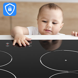 Wenn sich ein Kind in der Nähe des Kochfeldes aufhält, kann das Gerät durch Drücken der Kindersicherungstaste gesperrt werden, wodurch der Betrieb des Geräts unterbrochen wird und das Kind nicht zu Schaden kommt.