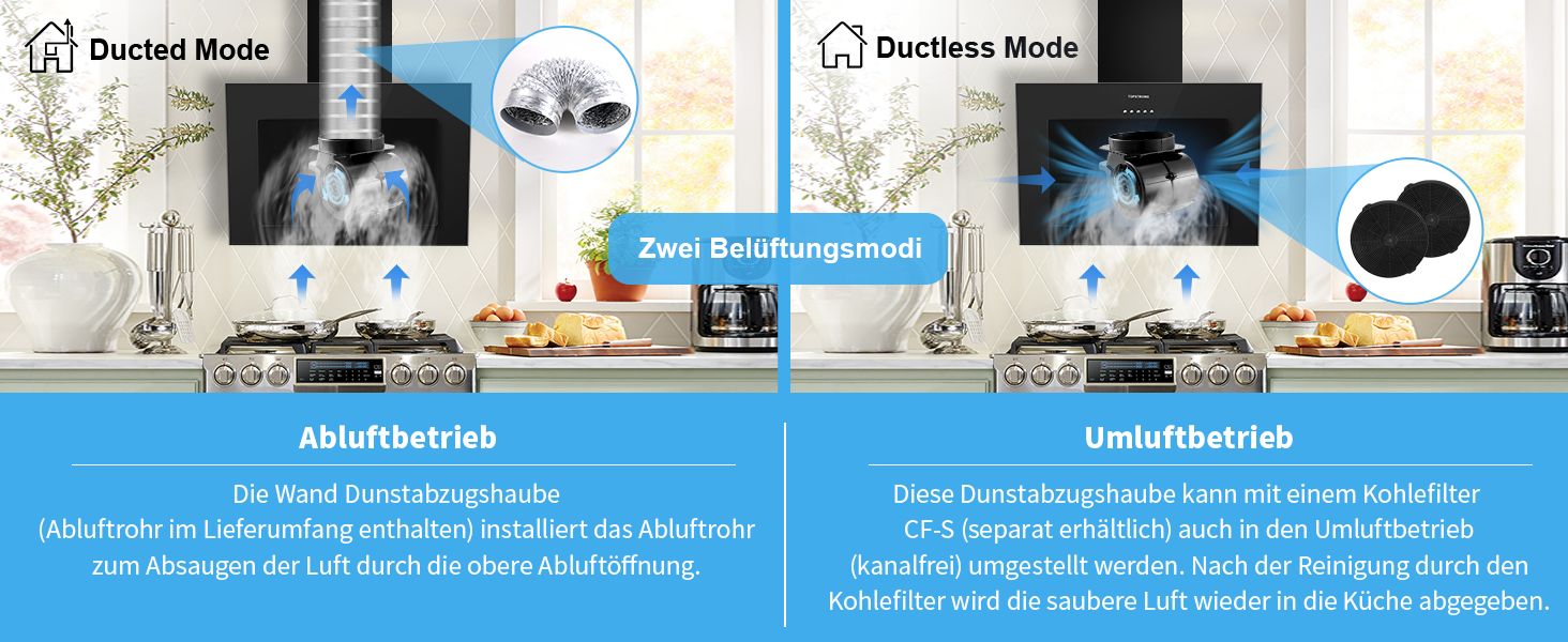 - Dunstabzugshaube mit Umluft- und Abluftbetrieb