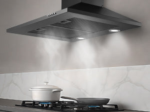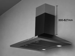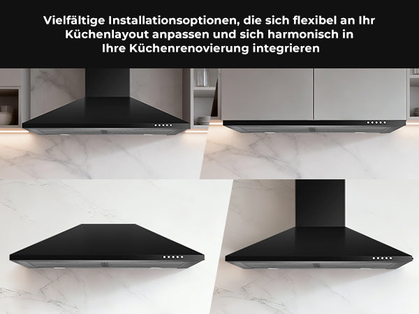 Abzugshaube 60cm ist aus mattschwarzem Material, stark widerstandsfähig gegen Rost und Korrosion.
