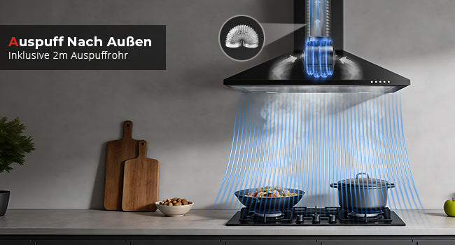 Durch ein 2 Meter langes Abluftrohr aus Aluminiumfolie (Innendurchmesser 150 mm) werden Kochdünste und Gerüche effektiv aus der Küche abgeführt. Das erweiterbare Design passt sich verschiedenen Küchengrundrissen an. Das Abluftrohr ist langlebig und einfach zu reinigen.