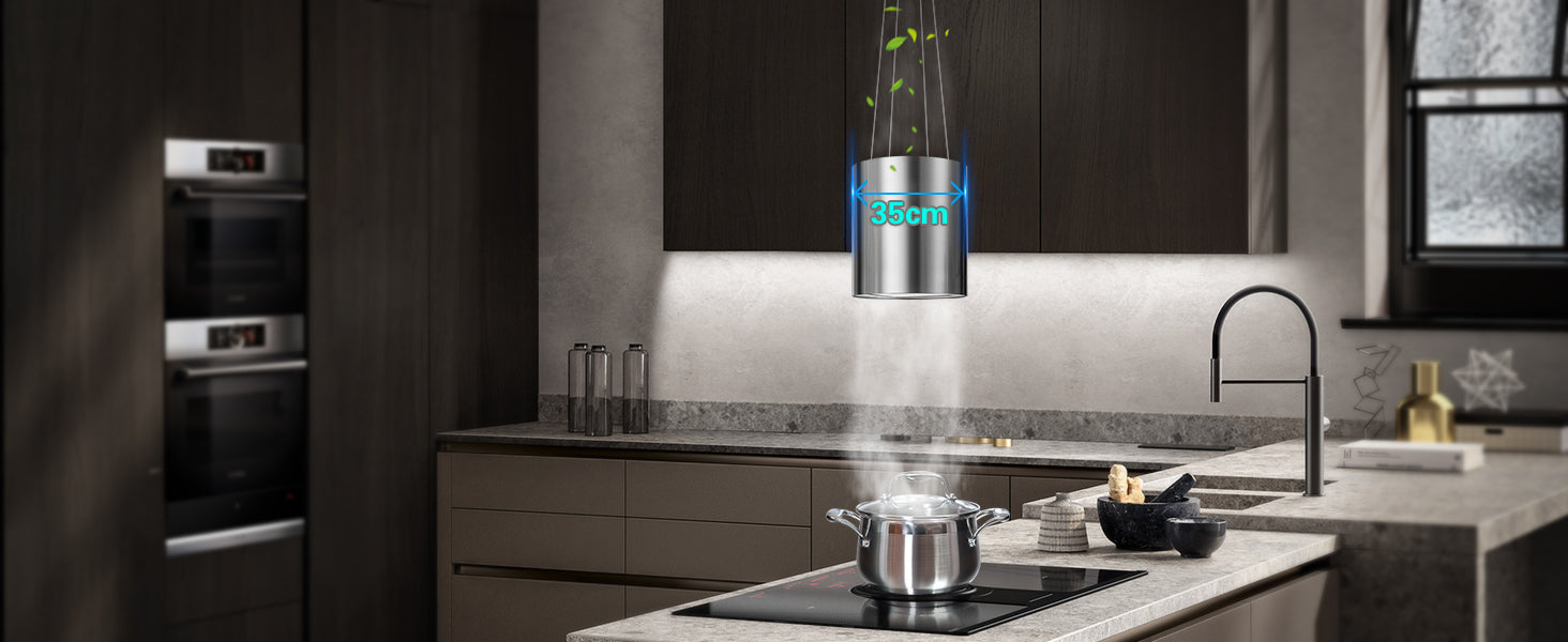 Leistungsstarken und funktionsreichen ist diese SNDOAS frei hängende Inselhaube YY-RH0735AESSNE für alle Kochsituationen geeignet, von schnellem Braten bis hin zu langsamen Schmoren.